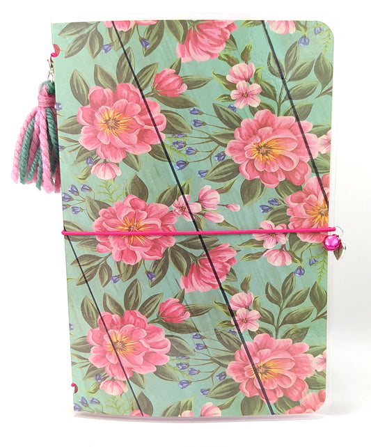 Libreta de viajero para bullet journal Flores rojas menta
